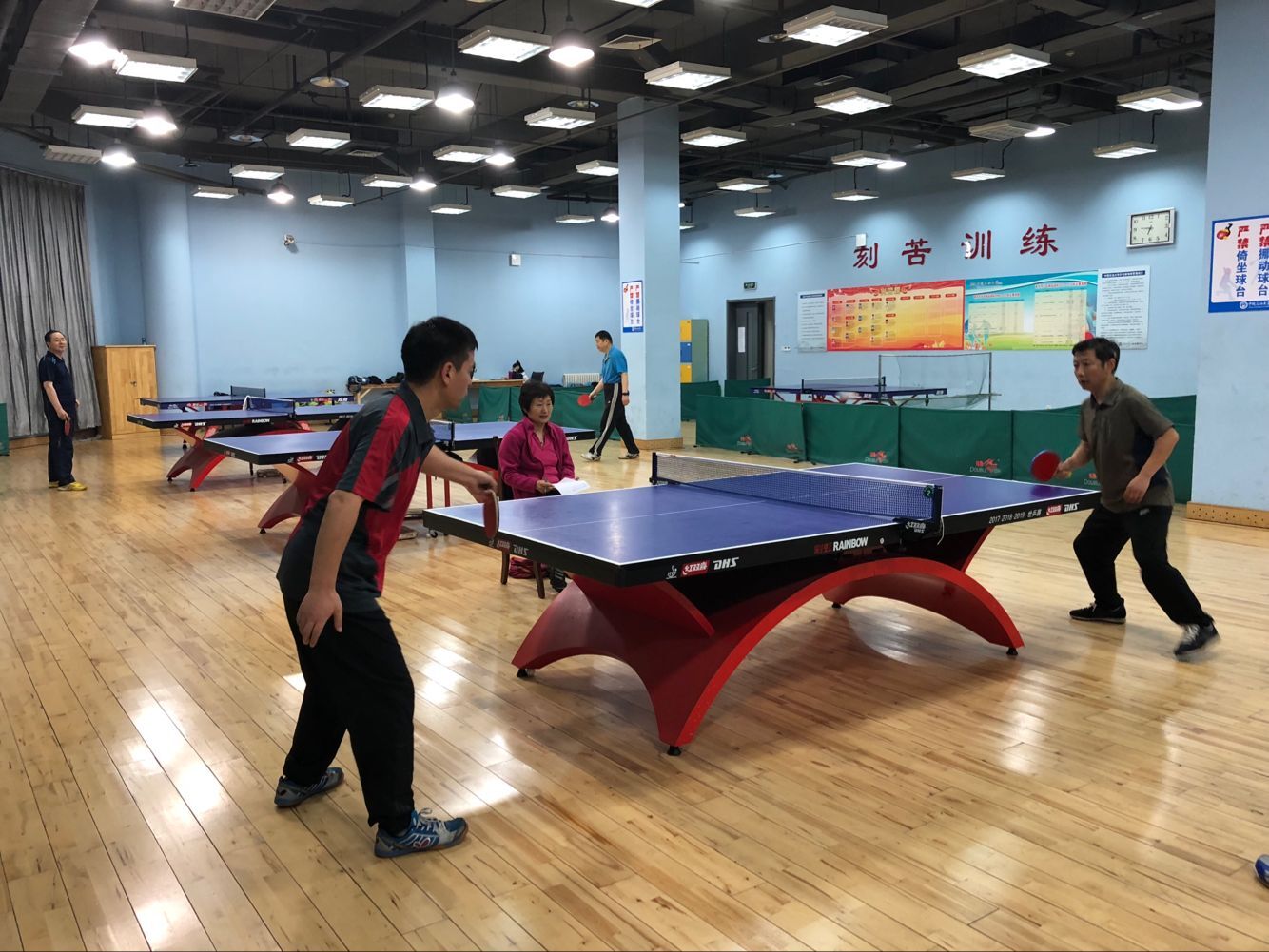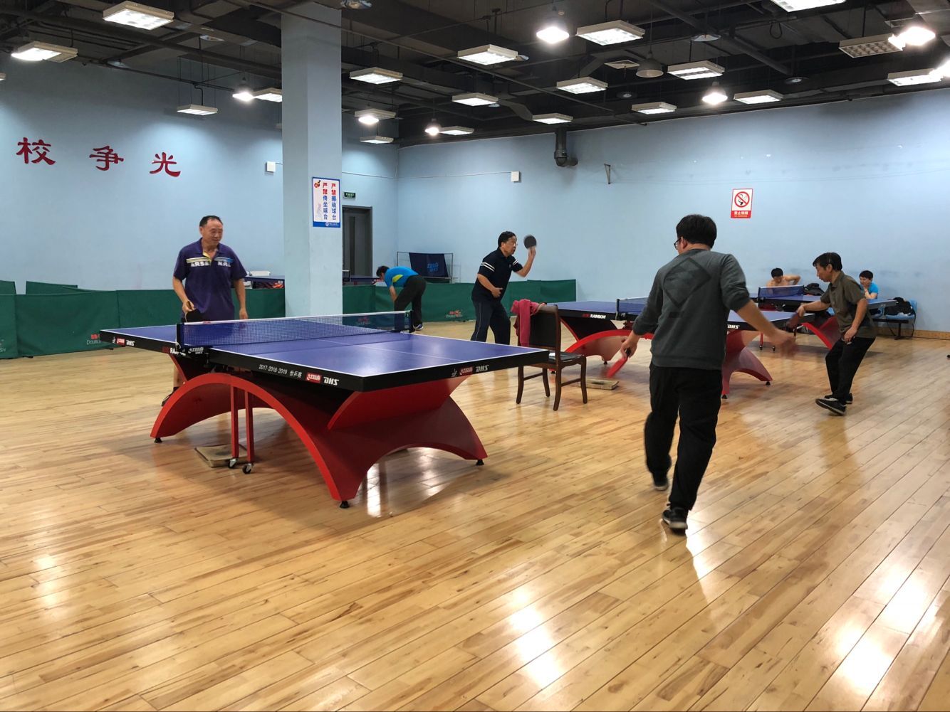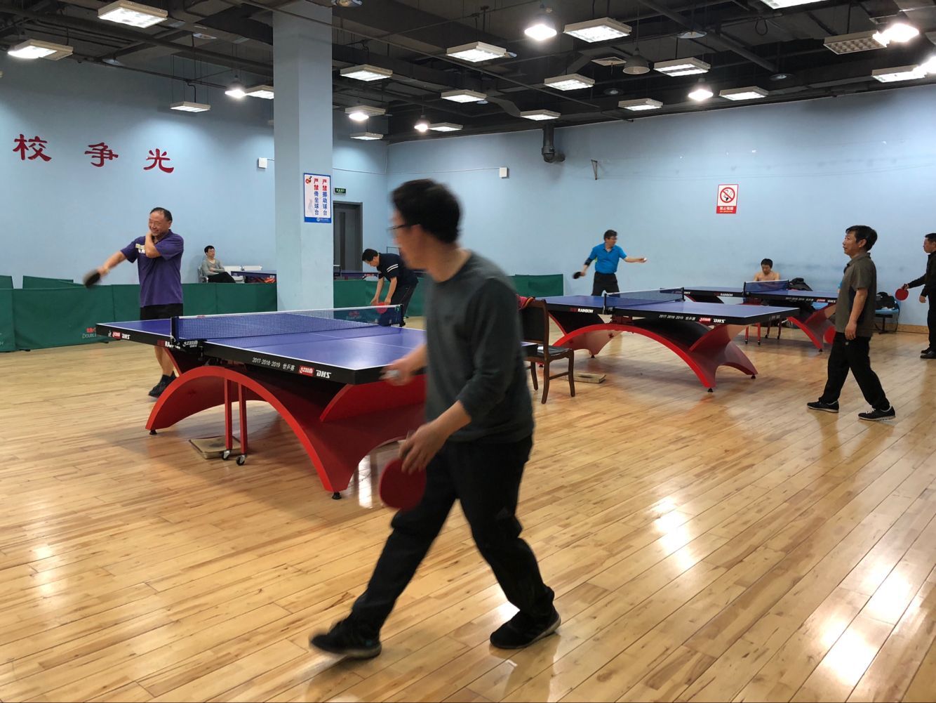 2018年5月11日下午,太阳成集团tyc9728工会组织学院全体教师在学校体育馆乒乓球室举行了马院乒乓球男子排位赛。比赛采取大循环,三局两胜制。我院王建军、霍洪波、于志亭、刘长欣、叶立国等老师在比赛场上十分活跃。经过激烈的角逐,最终叶立国老师获得男子单打一哥称号。