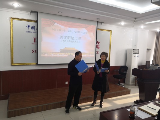 2018年11月24日,太阳成集团tyc9728美文朗读比赛在学院会议室举行。比赛进行了积极动员,共有近三十人报名参加比赛,经过层层筛选,有七组老师进入到了决赛。以司江伟书记领衔五人评委会最终评出一等奖一个,二等奖两个,三等奖四个。刘长欣牛继玲老师朗诵的《四月的纪念》获得一等奖,宋海儆老师朗诵的《我愿意是激流》、张璐、谷晓云、徐越三位老师联合朗诵的《我的南方与北方》获得二等奖。
