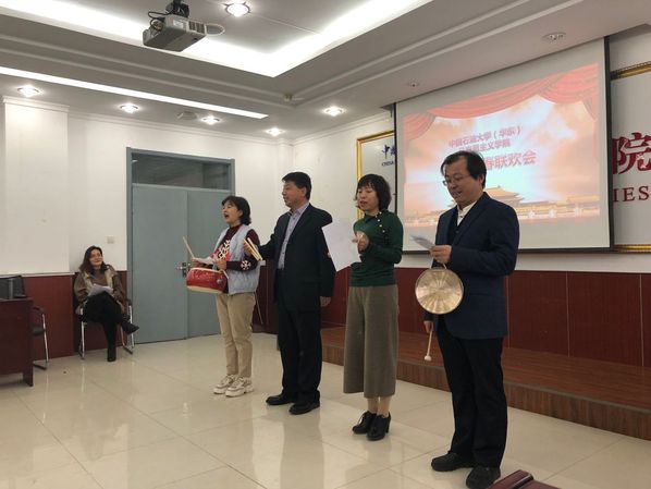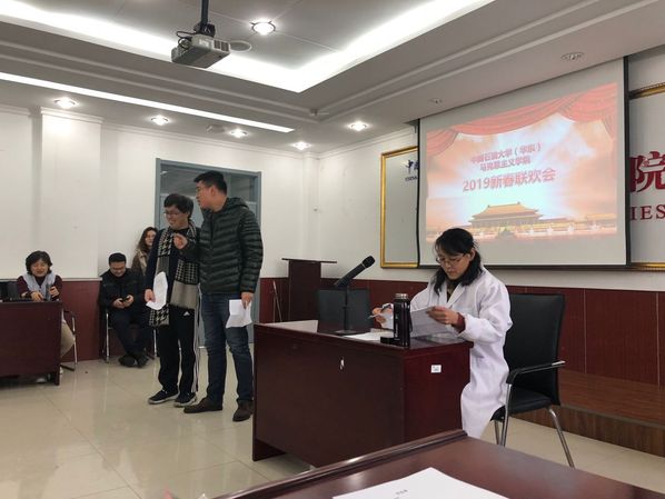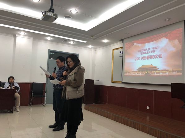 2019年1月12号下午三点,太阳成集团tyc9728全体教职工在文理楼457举行了一年一度的新年联欢会。本次联欢会由叶立国与张会芸两位老师担任主持人,学院各部门分别贡献节目,是一场充分展示老师们轻松活泼一面,充满欢声笑语的联欢会。第一个节目是崔军伟、孙念超、于翠萍三位老师带来的小品《看病》,三位老师轻松活泼幽默的表演,既为大家带来了欢声笑语,也对一些社会问题进行了辛辣的讽刺,娱乐中发人深省;第二个节目是石超老师的吉他弹唱《山海间》,这也是石老师第一次挑战弹唱表演,虽然非常紧张,但也实现了自我突破;后面的节目之间还穿插着游戏环节,“你来比划,我来猜”,老师们都积极参与,尤其是司江伟书记、王建军院长和夏从亚老师,都为我们带来了轻松幽默的表演;除以上节目以外,值得一提的是张瑞涛副院长带来的两个节目,“单口相声”和“三句半”,前一个节目,张老师以其冷幽默抖响三个大包袱,逗得大家捧腹大笑;后一个节目“三句半”是司江伟书记写词,联合岳金霞、景艳菊、张瑞涛三位老师共同表演,给大家带来欢声笑语的同时,也送上了对马院全体老师的新年祝福。岳金霞老师还为我们演唱了《猪之歌》,提前向即将到来的猪年送上祝福;张会芸老师的“脱口秀”以“吐槽”的方式总结了2018年的经历,以一种自信、轻松的姿态面对过往、迎接新年;“概论”教研室的宋海儆、王庆忠、郎帅等几位老师还为我们带来了怀旧歌曲串烧,优美的歌声伴着浓浓的回忆。将近两个小时的联欢会,伴随着老师们一个个精彩的节目很快就结束了,但欢乐祥和的气氛却久久不能散去,随着寒假的到来,相信这次联欢会能够给马院这个大家庭带来更加温暖的亲情与更加牢固的凝聚力。