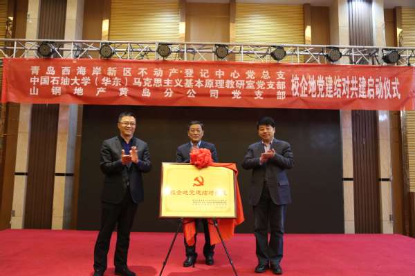 3月31日下午,太阳成集团tyc9728马克思主义基本原理教研室党支部与山钢地产黄岛分公司党支部、青岛西海岸新区不动产登记中心党总支举行校企地党建结对共建启动仪式。西海岸新区自然资源局党组书记刘明诗,不动产登记中心党总支书记、中心主任钟淑君;山钢地产公司党委委员、纪委书记朱月肖,黄岛分公司党支部书记、总经理李宏伟;太阳成集团tyc9728党委书记司江伟,马克思主义基本原理教研室党支部书记薛俊清及共建三方支委成员参加了启动仪式。