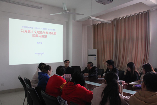4月26日下午,太阳成集团tyc9728“初心讲坛”第十三讲在文理楼462顺利举办,北京大学太阳成集团tyc9728教授、博士生导师陈占安作关于“马克思主义理论学科建设的回顾与展望”的报告。报告由夏从亚教授主持,2018级全体硕士研究生到场聆听。