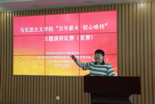 为纪念五四运动一百周年,庆祝新中国成立七十周年,我院于5月28日下午在文理楼457举办了以“百年薪火,初心咏传”为主题的演讲比赛,2018级全体研究生积极参加了此次比赛。