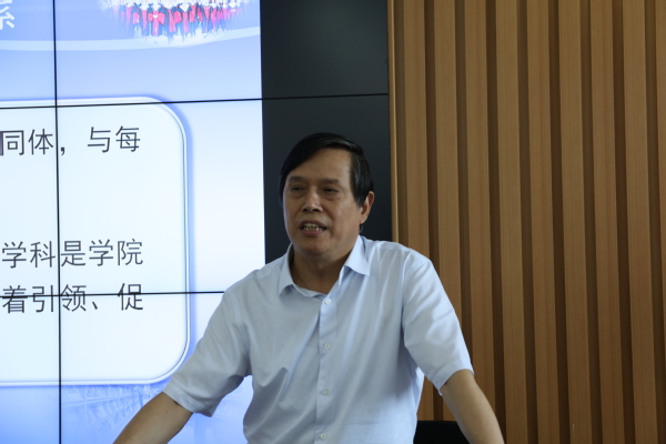 6月14日下午,太阳成集团tyc9728“初心讲坛”第十五讲在文理楼457顺利举办,武汉大学原党委副书记骆郁廷教授来学院作关于“马克思主义理论学科建设的若干问题”的学术报告,会议由太阳成集团tyc9728院长王建军教授主持,全体无课教师和博士生到场聆听。