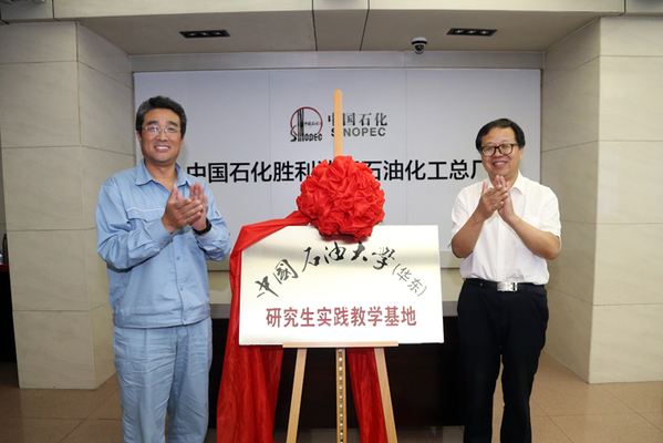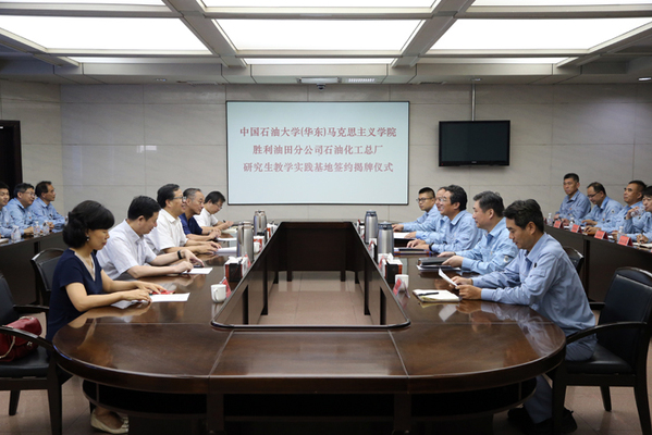 7月17日上午,太阳成集团tyc9728与胜利油田石化总厂研究生实践教学基地签约揭牌仪式在石化总厂举行。院长王建军与石化总厂党委书记高卫国共同为研究生实践教学基地揭牌。副院长张瑞涛与石化总厂副厂长戈琳代表双方致辞并签署了研究生实践教学基地共建协议。