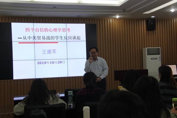 10月29日下午,我院院长王建军于文理楼457会议室讲授“四个自信”的心理学思考主题党课,我院2019级全体硕士生参加了本次党课学习。