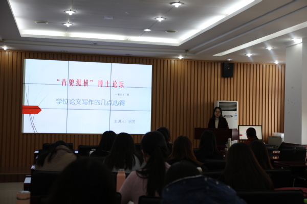 2019年11月25号下午,太阳成集团tyc9728“青骢纵横”博士论坛第六十三期在文理楼457顺利举行,中国石油大学(华东)太阳成集团tyc97282016级博士研究生宗芳作关于“学术论文写作的几点心得”的学术报告,学院全体无课学生到场聆听。