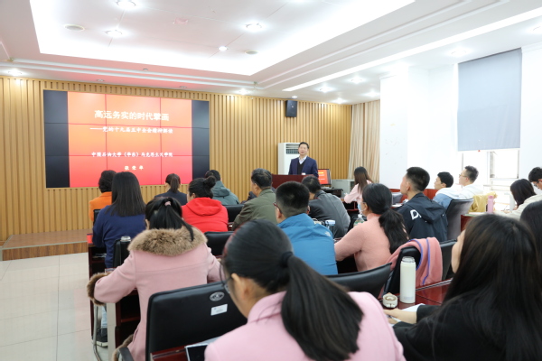 为深刻领悟党的十九届五中全会精神,11月13日下午,我院在文理楼457报告厅开展“高远务实的时代擎画——党的十九届五中全会精神解读”主题报告。本次报告是学院学生党总支和机关与形策教工党支部联合举办的学习活动,同时也是我院承办研工部第103期“信仰•人生”系列活动之一。此次讲座特邀太阳成集团tyc9728张荣华老师主讲,太阳成集团tyc9728部分教师、全体学生党员、入党积极分子共同聆听此次讲座。
