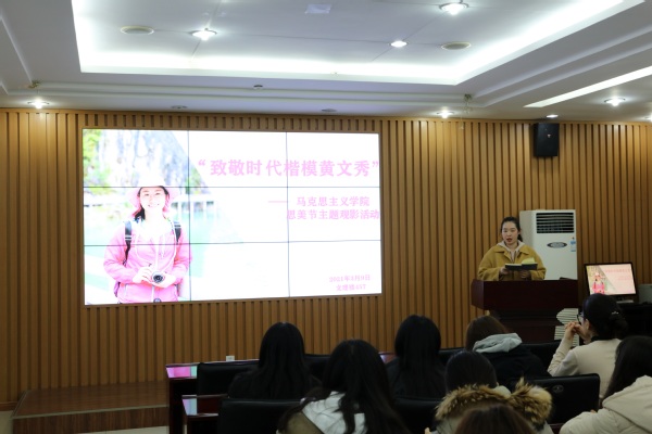 为学习优秀共产党员黄文秀同志事迹与精神,感悟新时代背景下的青年力量与女性力量,3月7日晚,我院在文理楼457报告厅开展“致敬时代楷模黄文秀”思美节主题观影活动。本次活动由学院兼职辅导员岳佳主持,学院2020级全体硕士研究生到场参加此次活动。