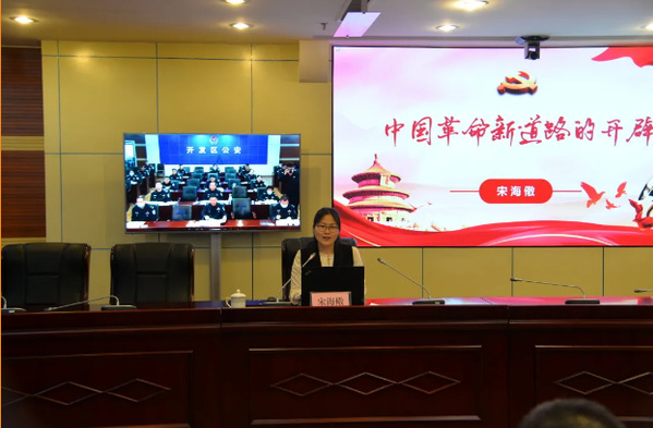 开班仪式后,太阳成集团tyc9728宋海儆副教授以《中国革命新道路的开辟》为题为全体民警上了一节精彩的党课。通过回顾建党后到遵义会议的一段历史,讲述共产党如何克服重重困难找到农村包围城市、武装夺取政权的革命道路的,包括引言,历史背景,艰难转变,破茧而出,曲折前行五个部分。重点说明了革命、建设、改革的道路都是中国共产党人把马克思主义基本原理与中国实际相结合探索出来的。寻路不易,要坚持道路自信。