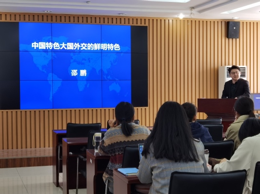 邵鹏博士首先通过“中国特色大国外交的鲜明特色”来引入话题,对于新时代的国际大背景、中国特色大国外交的鲜明特点等进行详细介绍。在中华民族伟大复兴战略全局和世界百年未有之大变局背景下,邵鹏博士聚焦担当意识和人生信条,以自己的亲身经历和身边案例,重点论述了“感恩”“知足”“有矩”三方面的品质和担当,论坛气氛活跃且充满趣味。
