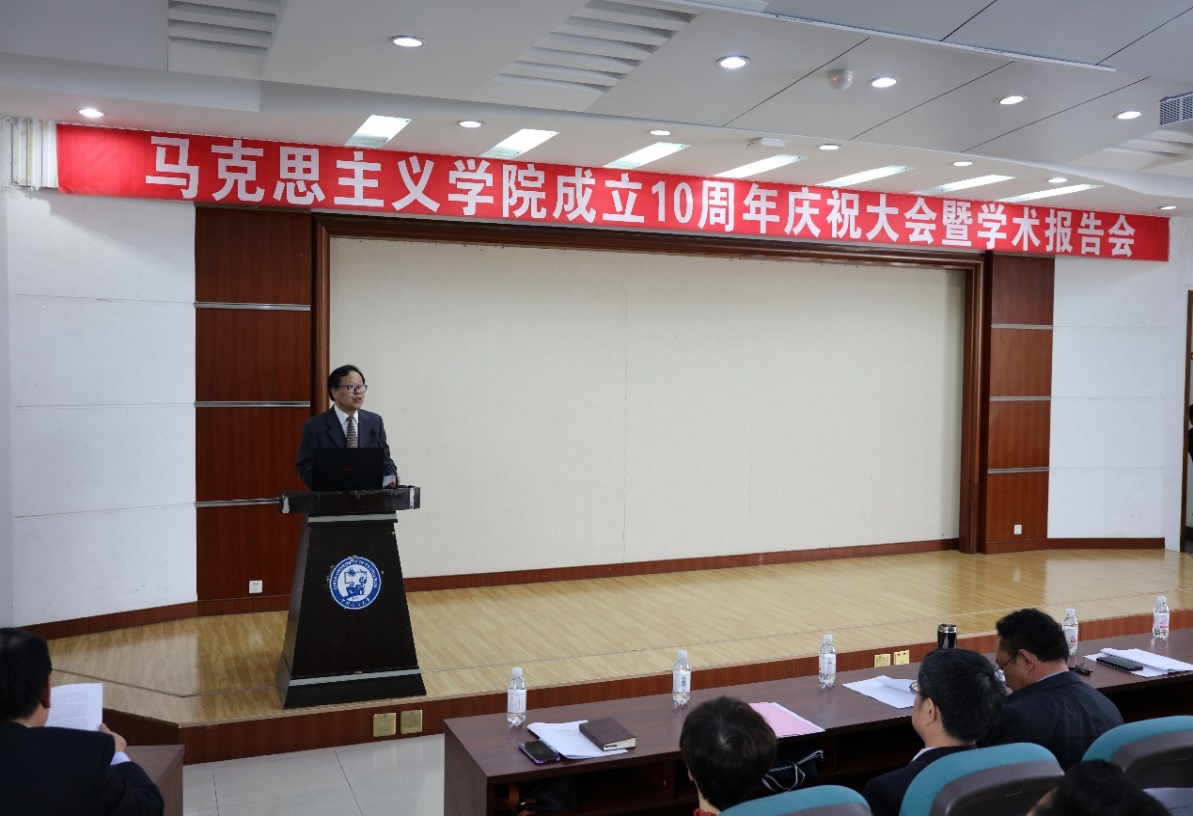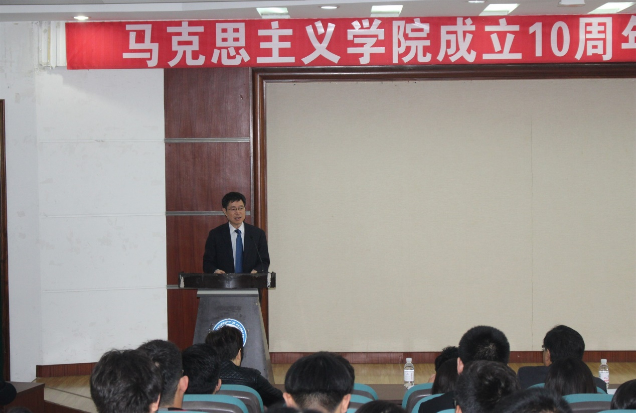 太阳成集团tyc9728院长王建军首先致辞。他回顾了十年来学院的发展历程和取得的标志性成果,尤其是在师资队伍建设、平台和学科建设、科学研究与社会服务、思想政治理论课建设、研究生教育管理、党建与思想政治工作、学生工作等方面取得的突出成绩,展望了学院未来的发展前景。