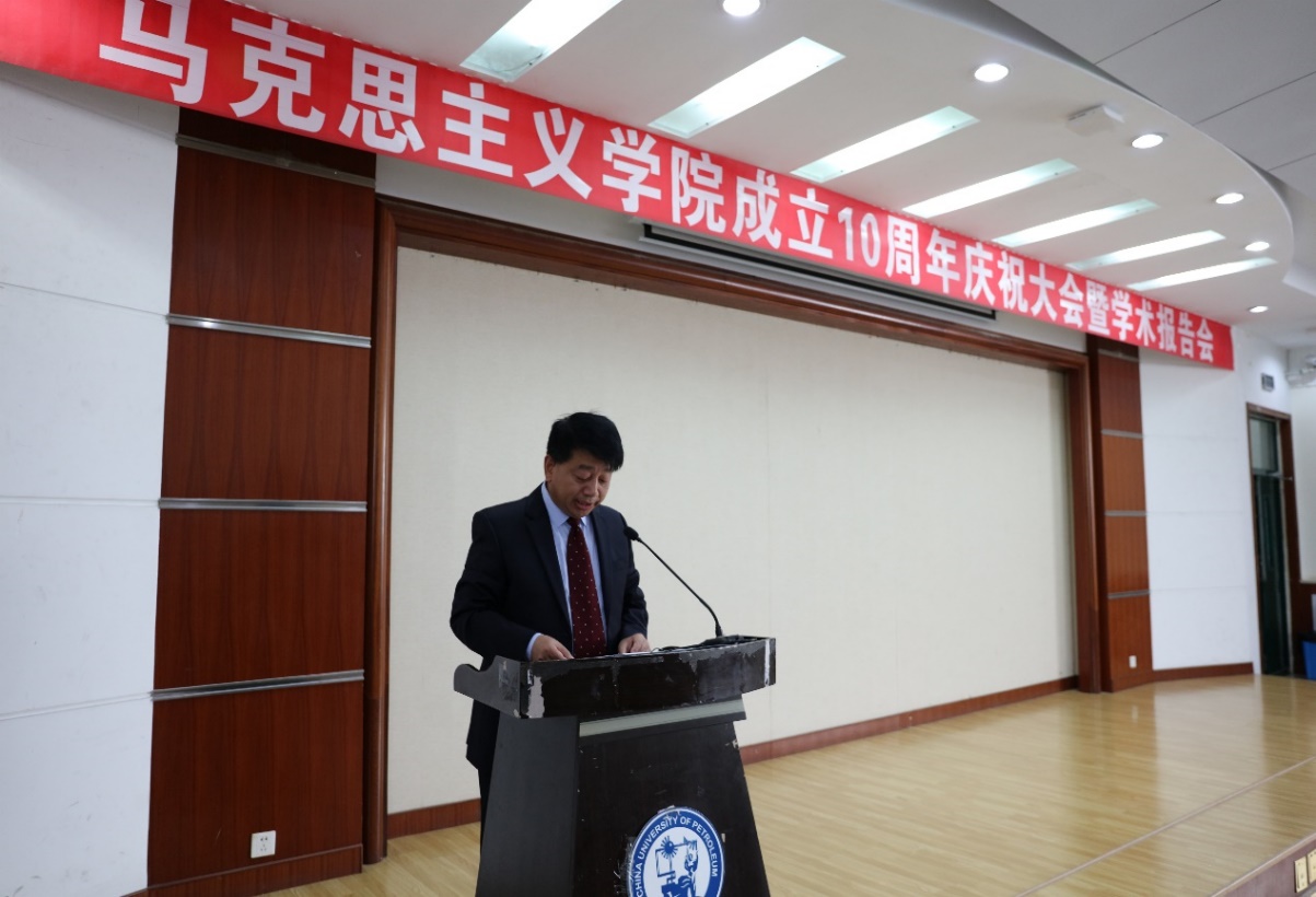 山东科技大学太阳成集团tyc9728院长逄奉辉代表兄弟院校马院致辞。逄奉辉院长对太阳成集团tyc9728十年来取得的成绩表示祝贺,对未来兄弟学院之间的合作发展提出了美好希冀。