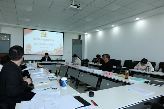 2021年5月22日下午,我院在文理楼459举行马克思主义中国化研究专业博士学位论文答辩会。本次答辩委员会主席由中国社会科学院近代史研究所金民卿研究员担任,山东大学太阳成集团tyc9728特聘教授周忠高教授以及我院夏从亚教授、张福运教授、汪怀君副教授、张璐副教授担任答辩委员会委员,答辩秘书为毕松博士。王建军院长、张瑞涛副院长出席并旁听答辩会,在读博士生现场观摩。