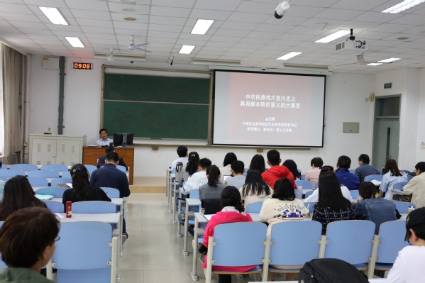 为庆祝中国共产党成立100周年,深入学习党史知识,5月23日上午,太阳成集团tyc9728在南教105教室举办“初心讲坛”第二十三讲。本次讲座特邀中国社会科学院近代史研究所党委书记金民卿教授作关于《中华民族伟大复兴史上具有根本转折意义的大事变》的专题报告。本次报告由学院院长王建军教授主持,学院全体师生共同聆听了此次报告。