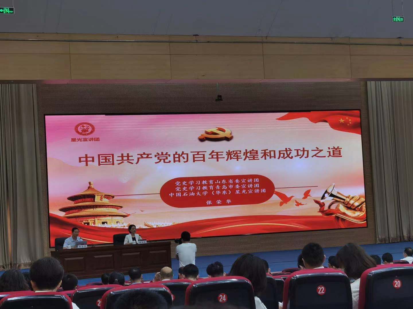 张荣华教授以“中国共产党的百年辉煌和成功之道”为题,从中国共产党在新民主主义革命时期完成救国大业的开天辟地,到社会主义革命和建设时期完成兴国大业的改天换地,到改革开放和社会主义现代化建设新时期推进富国大业的翻天覆地,再到中国特色社会主义新时代推进并将在本世纪中叶实现强国大业的惊天动地,详细讲述了中国共产党带领中国人民砥砺奋进、从胜利走向胜利的光辉历程,从中国共产党有不变的初心和使命、有科学理论指引、有好的政治制度、有坚定不移的中国道路、有自我革命精神、有人民群众的巨大力量等六个方面,详细阐释了中国共产党的成功之道。