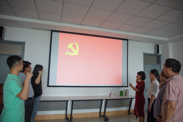 最后,各位党员和教师面对鲜红的党旗,再一次庄严地喊出了自己的入党誓词,决心加强各方面的学习、研究和调查,努力走近学生、关爱学生、服务学生,为党和国家的教育事业贡献自己的一份力量。