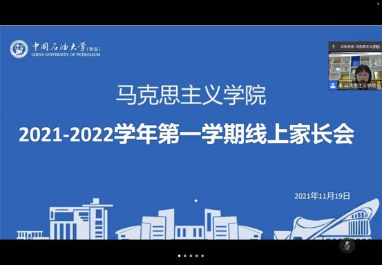 为加强学校与家庭之间的沟通与联系,形成学校与家长之间的教育合力,促进学生的健康成长,11月19日,马克思主义学院面向全院学生家长召开线上家长会。学院院长张瑞涛,党委副书记、副院长袁爱军,团委书记王会及全院研究生家长共同参会。
