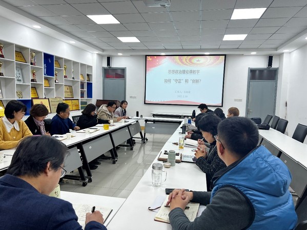 副院长宋海儆做了题为“思想政治理论课程教学如何‘守正’和‘创新’”的汇报,提出怎么想、怎么看、怎么办三大问题,并依次进行了分析。首先应该树立守正创新和稳中求进的基本思路;其次从日常运行、教学效果以及标志性成果方面聚焦存在的问题;最后从日常运行、教学效果以及标志性成果三方面寻找对策。