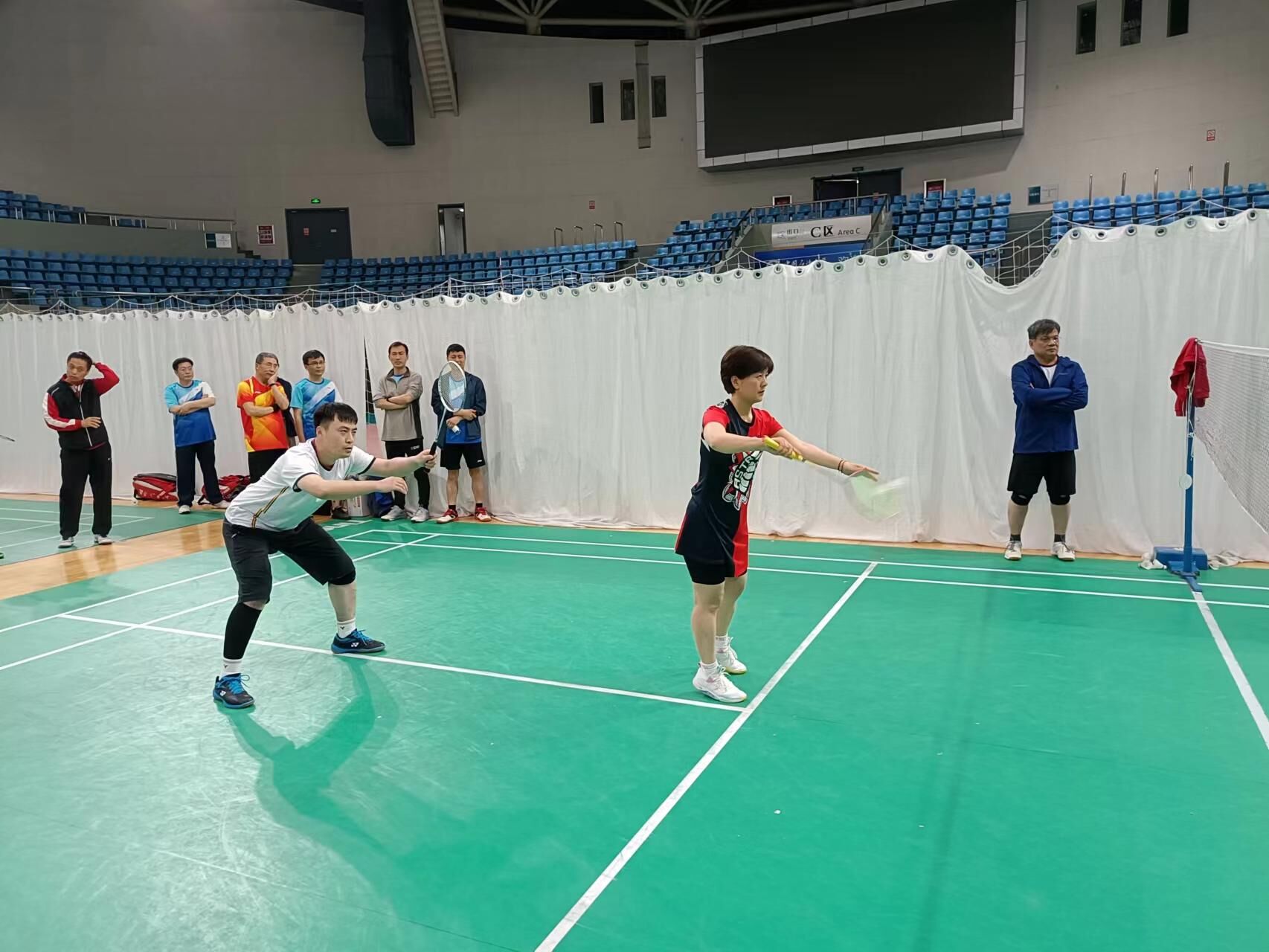 本次比赛由学校工会主办、教职工羽毛球协会承办,共有16个单位、近180名运动员参赛。今年比赛为混合团体赛,采用“五羽轮比”赛制,7名队员轮流上场进行双打比赛。为增强院系间的交流合作,积极参与学校工会组织的活动,提高团队凝聚力和向心力,在马院人员不足的情况下与新能源学院联合组队,发挥双方优势,展现拼搏精神,取得良好成绩。