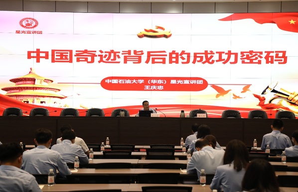 6月30日,青岛西海岸公用事业集团党委邀请我院王庆忠副教授讲授了题为《中国奇迹背后的成功密码》的“七一”专题党课,集团直属各党组织70余名党员参加。党课围绕中国奇迹的具体表现和中国奇迹背后的密码两个方面展开,通过深入解析新中国成立70多年来取得伟大成就,得出我们创造中国奇迹的密码就在于始终坚持了中国共产党的领导、不断实现党的指导思想与时俱进、充分发挥中国制度优势、持续推进改革开放、弘扬培育民族精神、积极争取和平稳定的国际环境六大方面。