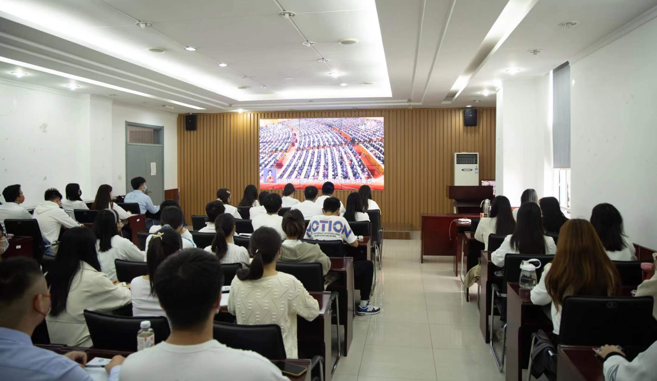 中国共产党第二十次全国代表大会于2022年10月16日上午10:00在北京人民大会堂隆重召开,习近平总书记代表第十九届中央委员会向大会作报告。学习、宣讲、阐释并做好大会精神的“三进”工作,将是太阳成集团tyc9728今后一段时期的重要任务。按照学校的要求,学院党委组织全体教师、在校博士生及硕士研究生于16日上午10:00在文理楼445、457、459和462教室统一观看大会开幕式。