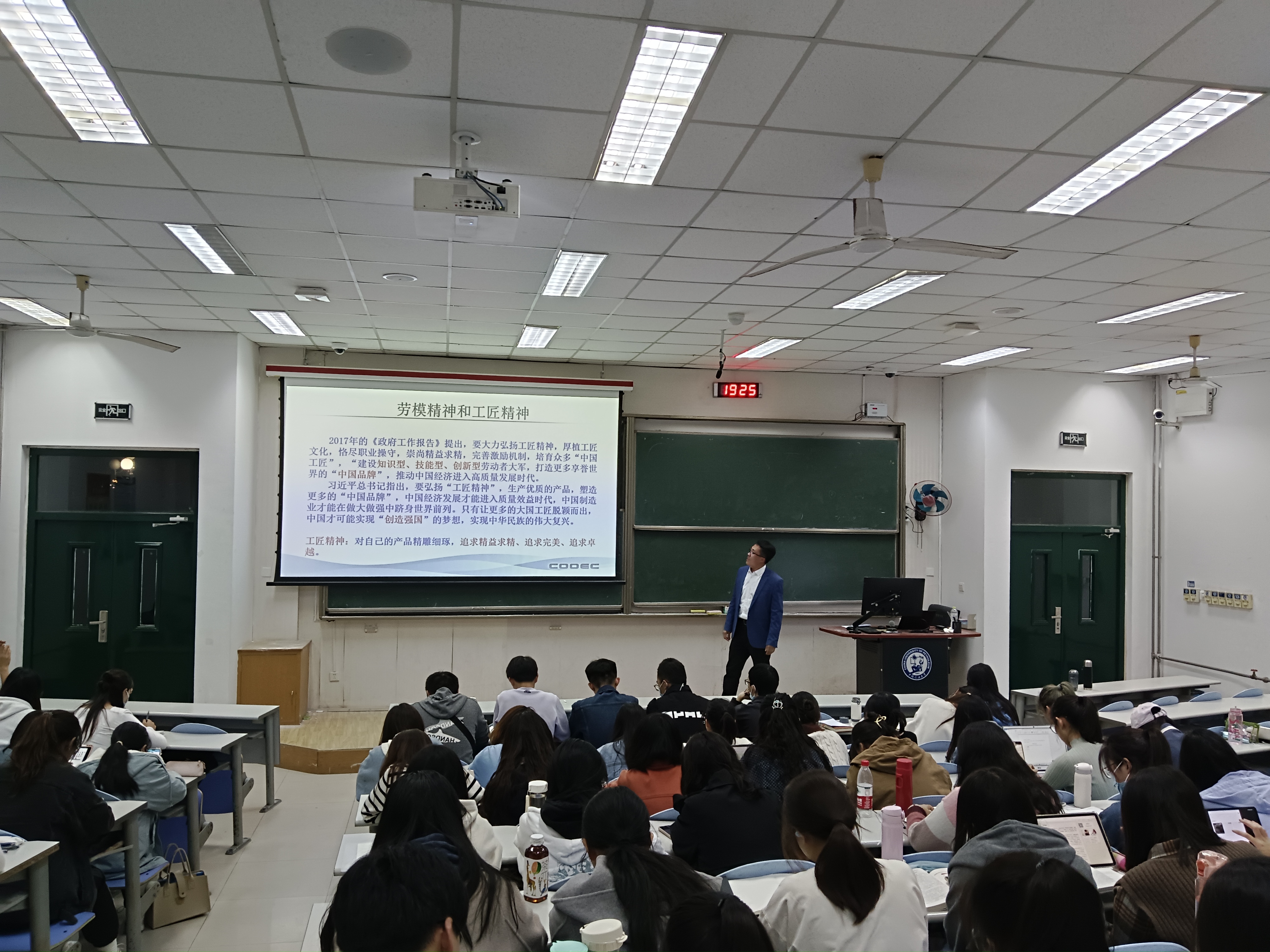 讲座结束后,戴师傅还和同学进行了交流和讨论。本次讲座既是概论教研室党支部和海油工程青岛公司相关党支部共建的结果,也是我院开展“大思政”教学的一个成果,讲座受到青年大学生的欢迎。