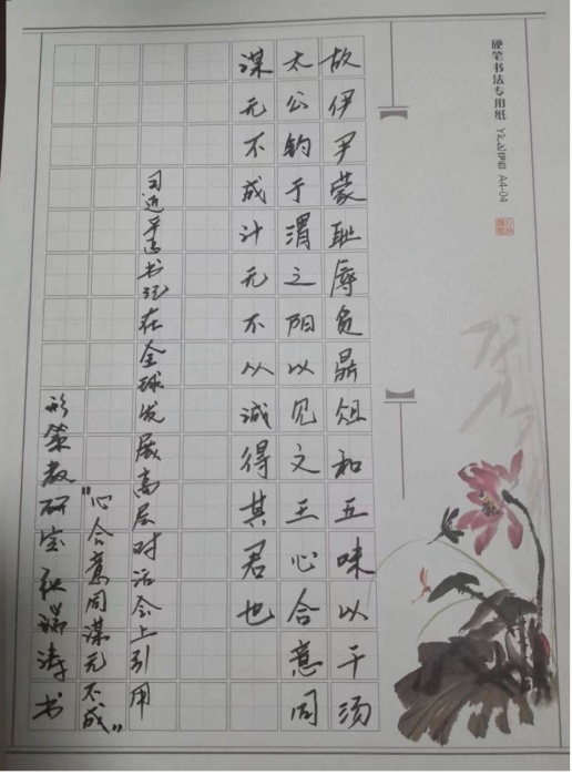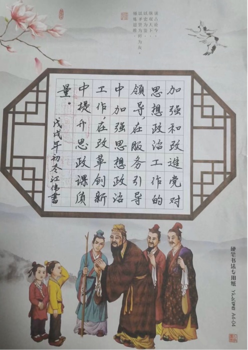 为迎接中国共产党二十大胜利召开,学院工会举办了具有鲜明马院特色的系列活动“习语近人”书法展。大家用A4打印纸为蓝本,摘录习近平总书记对高校思想政治工作重要性的论述。老师们在练习书法的过程中进一步领会习近平总书记关于高校思想政治工作重要性的论述,自觉加强高校思想政治工作的引领作用。我们共收到书法作品六十余幅,参与范围广、活动影响深远。