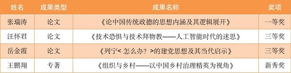 近日,青岛市第三十六次社会科学优秀成果奖评审结果揭晓,我院共有4项成果获奖。其中,张瑞涛教授获得一等奖,汪怀君、岳金霞教授获得三等奖,王鹏翔博士获得新秀奖。