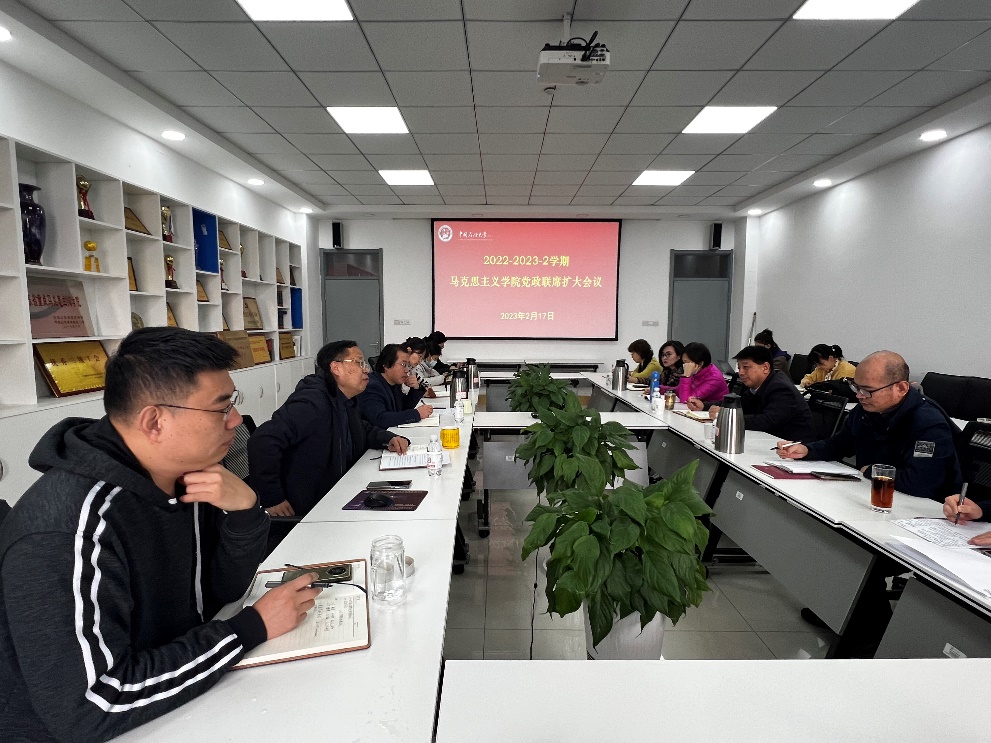 2月17日,学院在文理楼459召开新学期党政联席扩大会议。会议由张瑞涛院长主持,学院领导班子成员,学院教授委员会主席,各教研室主任、支部书记,学院工会主席、团委书记、办公室主任等参加会议。