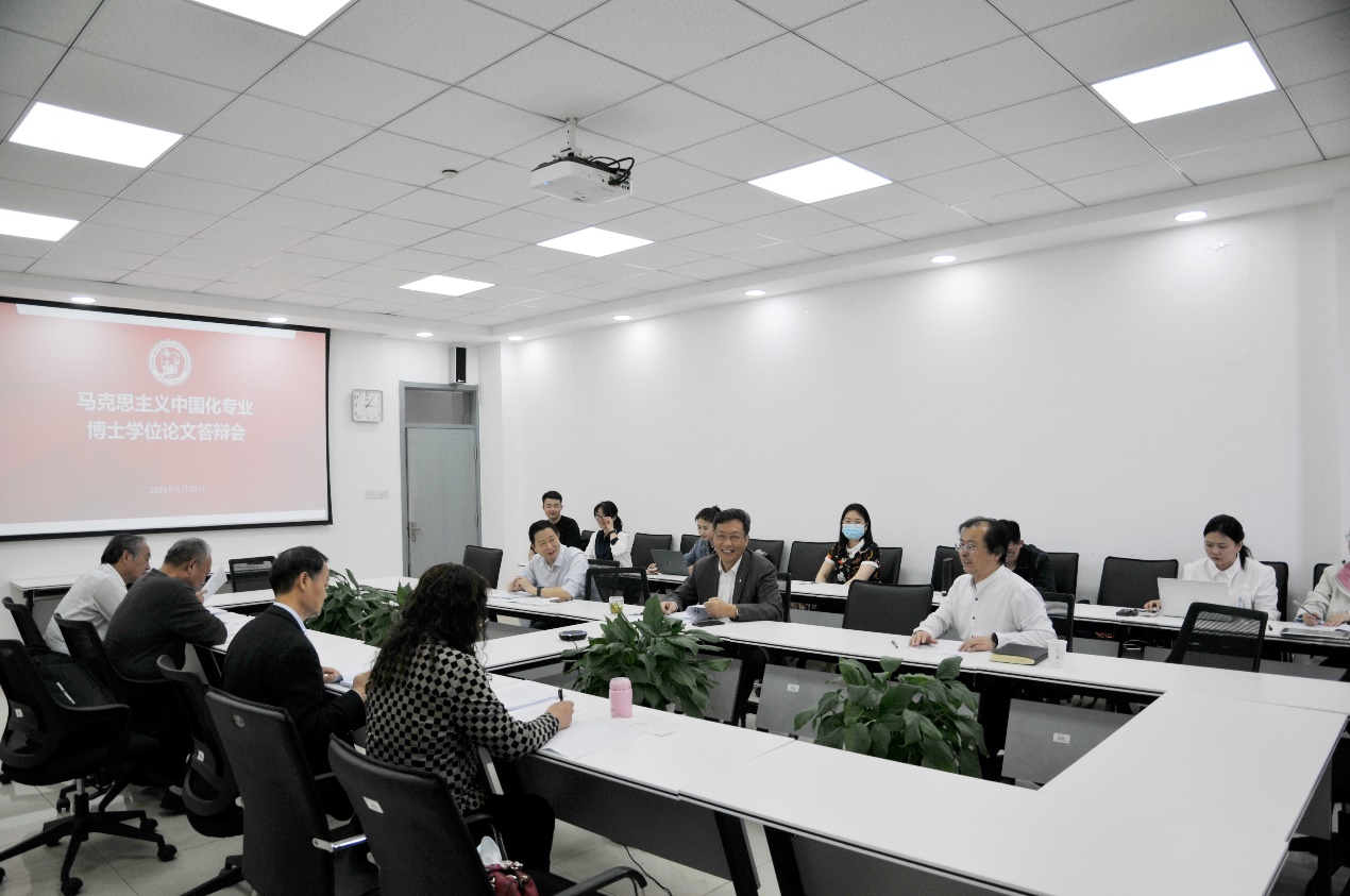 2023年5月15日下午,学院在文理楼459会议室举行了马克思主义中国化研究方向博士学位论文答辩会。本次答辩委员会主席由南京航空航天大学博士生导师王岩教授担任,曲阜师范大学博士生导师孙迪亮教授、中国农业大学博士生导师张红霞教授,以及我院博士生导师张荣华教授、夏从亚教授和张福运教授担任答辩委员会委员,答辩秘书为李文君老师。学院院长、学位评定分委员会主席张瑞涛出席并旁听答辩会,部分学生现场观摩博士学位论文答辩。