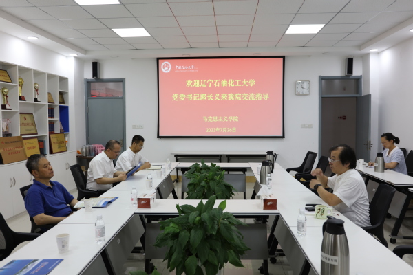 7月26日,辽宁石油化工大学党委书记郭长义一行来我院考察调研,学院院长张瑞涛、党委书记司江伟陪同并参加座谈。