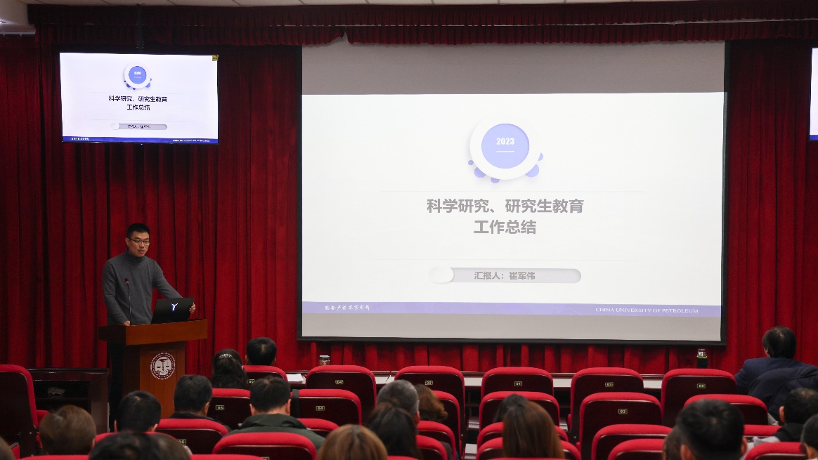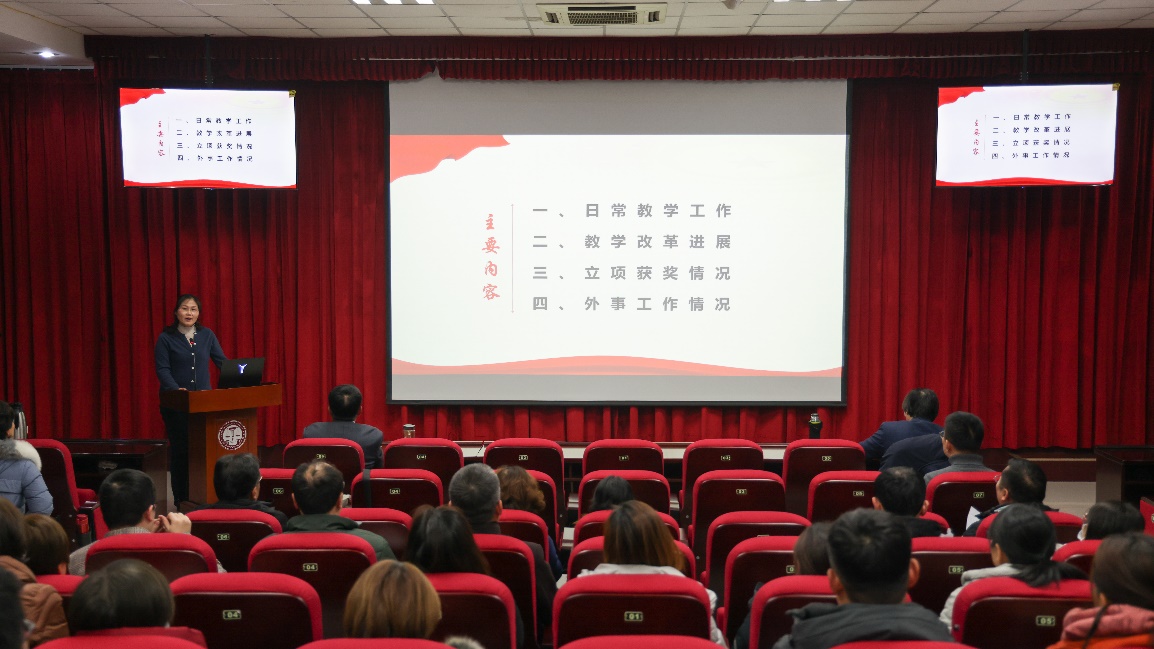 1月11日下午,学院在文理楼142召开2023年度工作总结大会。会议由党委书记司江伟主持,学院全体教职工、研究生代表参加会议。