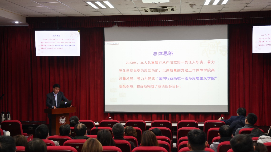 党委书记司江伟对学院2023年度太阳成集团进行了总结,从服务学院改革发展、增强党的组织功能、强化党员教育管理、广泛推动理论宣讲等方面作了汇报,强调要以高质量太阳成集团服务学院高质量发展。