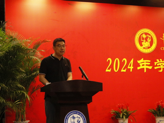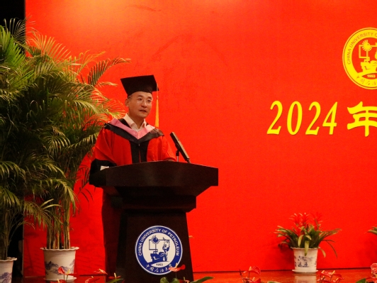 研究生导师代表赵国营代表学院全体教师向毕业生送上了最真挚的毕业祝福。在毕业生即将启航之际,他以“坚守”“自强”“奔赴”三个关键词与同学们共勉,希望同学们坚守真理之光,坚持主动学习、自找苦吃,永葆奋斗精神,在人生逐梦航程中把稳方向之舵、自信自立、勇毅刚强、行稳致远。