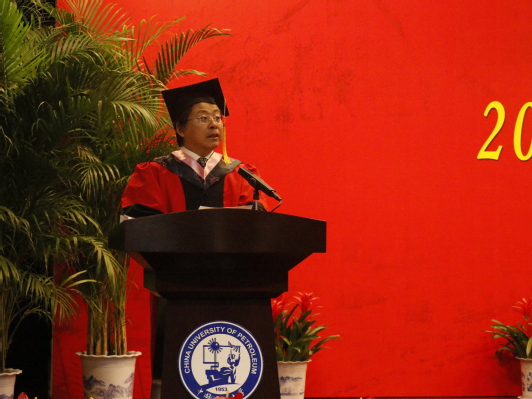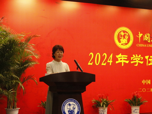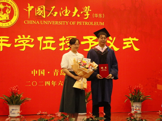 学位评定分委员会副主席、副院长崔军伟宣读学位授予决定,授予任岚峰、黄翠翠2名研究生法学博士学位,授予张淑琪等32名研究生法学硕士学位。在悠扬的乐声中,学院院长张瑞涛为毕业生一一拨穗正冠、颁发学位证书,身着学位服的毕业生们依次有序上台、鞠躬致礼,并与院长合影留念。
