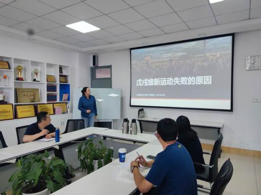 郭露凝以“戊戌维新运动失败的原因”为题,对拟开设课程进行了10分钟的教学展示,并汇报了一年来跟随指导教师课堂听课、辅导答疑、作业批改以及参加学校教学素养提升计划培训班的收获感想。王鹏翔、李文君、刘继元分别对助教期第二年工作完成情况进行了简要陈述,分享了指导教师对其课堂教学、随堂听课、课堂检查和课后指导的建议与反馈,以及自己的收获和体会。