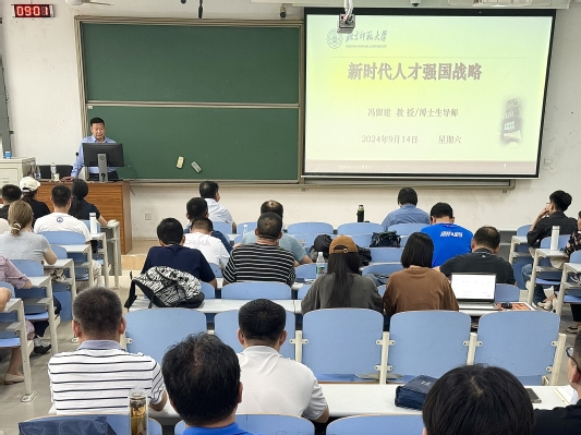 人才是第一资源、强国之本,为深入学习贯彻习近平新时代人才工作新理念新战略新举措,9月14日上午,学院在南教107举办“初心讲坛”第三十四讲。本次讲座邀请北京师范大学京师特聘教授、中共党史党建研究院副院长冯留建作《新时代人才强国战略》的专题报告,讲座由学院院长张瑞涛主持,学院全体无课教师和研一、研二、博士学生参加。