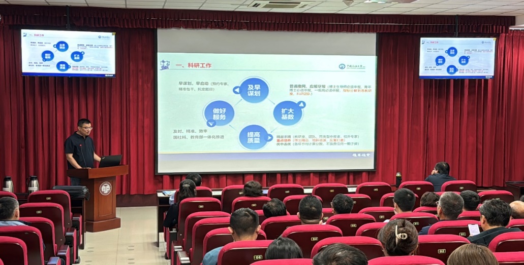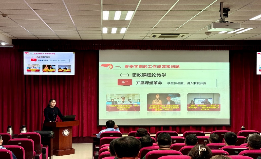 学院分管副院长分别总结和部署工作。学院副院长宋海儆从思政课理论教学、思政课实践教学等五个方面,总结了2024年春季学期的工作成效和问题,安排部署了秋季学期的工作重点。学院副院长崔军伟对科学研究、研究生教育工作做了总结和部署,提出科研工作要及早谋划、做好服务、提高质量、扩大基数,研究生教育工作要守正创新,强化各环节的督导,有组织地开展教学改革与课程建设、教材建设。学院党委副书记、副院长袁爱军对上半年学院学生工作作了总结,安排了下一阶段的学生工作。