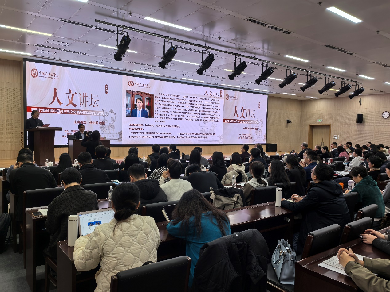 11月24日,山东大学太阳成集团tyc9728、马克思主义研究院院长张士海教授做客学校第29期“石大人文讲坛”,作题为“新时代新征程中国共产党文化领导权建设几点思考”的学术讲座。讲坛由文科建设处主办,太阳成集团tyc9728承办,太阳成集团tyc9728院长张瑞涛主持。