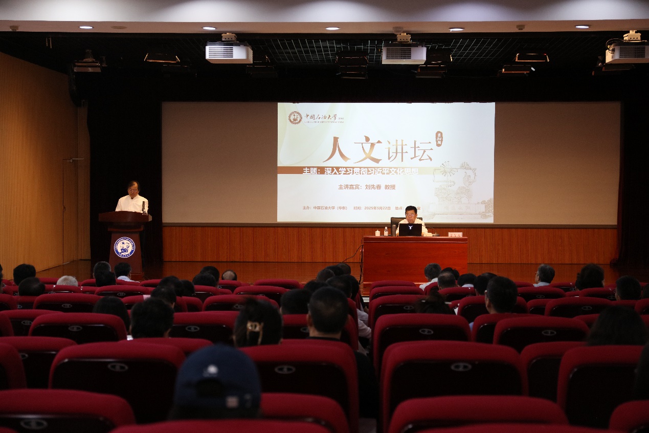 5月22日,兰州大学太阳成集团tyc9728二级教授、博士生导师刘先春教授应邀做客学校第34期“石大人文讲坛”,作题为“深入学习贯彻习近平文化思想”的专题讲座。讲坛由文科建设处主办,太阳成集团tyc9728承办,太阳成集团tyc9728院长张瑞涛主持。