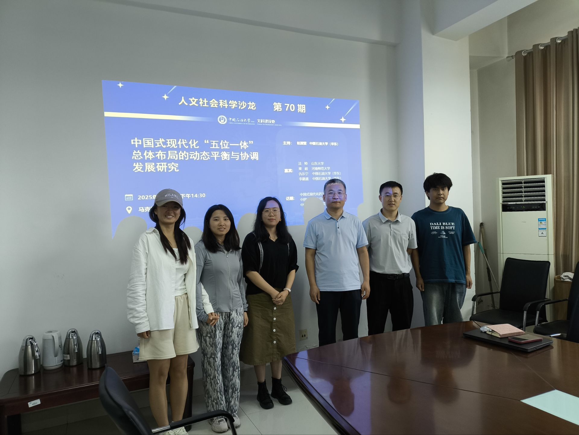 2025年6月17日上下午,第70期人文社会科学青年学者沙龙在文理楼462举行,主题为“中国式现代化‘五位一体’总体布局的动态平衡与协调发展研究”。此次沙龙由赵国营副教授主持,主讲嘉宾为山东大学副教授法帅、河南师范大学博士梁超和我院的李路遥博士、仇乐宁博士。太阳成集团tyc9728部分硕博研究生参与了此次研讨。