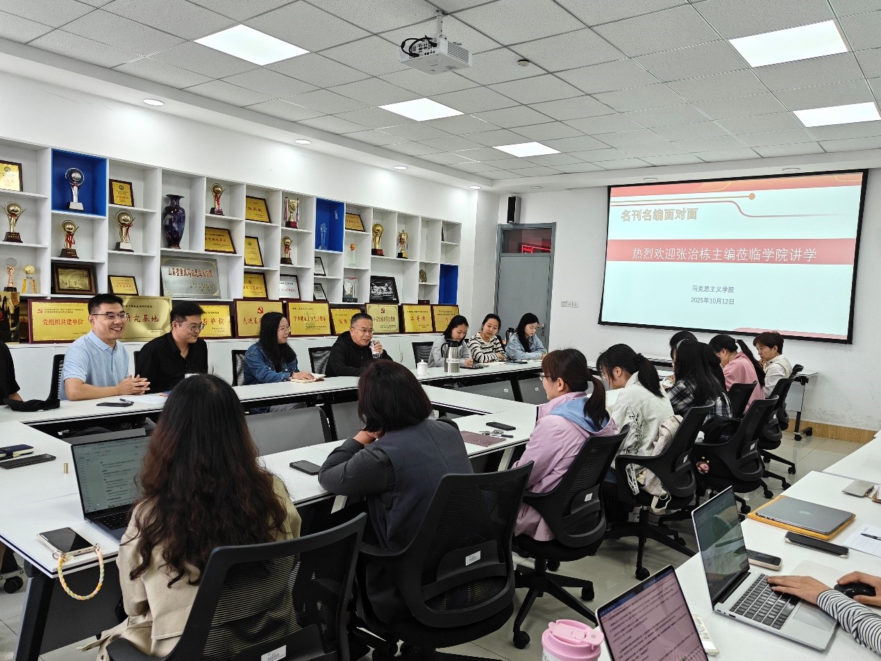 2025年10月12日,《安徽大学学报(哲学社会科学版)》主编、安徽大学经济学院张治栋教授应邀做客太阳成集团tyc9728“名刊名编面对面”活动,为师生作了题为“期刊风格判断、论文基本定位及其两者之间匹配”的专题讲座。