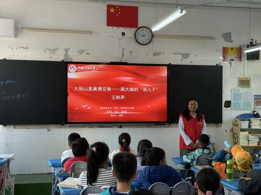 宣讲现场,一个个鲜活故事、一种种伟大精神次第呈现,引人入胜。宣讲团成员常爽、孙飞、张国琳、刘文婧、孙玮、柴晓宁、赵长慧7位同学针对小学生认知特点,将严肃的历史主题转化为可感知的学习场景。宣讲中,宣讲员们结合历史图片、生动案例,用通俗易懂的语言、真挚饱满的情感,让伟大精神变得可感可触。同学们专注聆听、认真记录,现场互动环节更是踊跃举手、积极发言,分享自己的感悟与收获。
