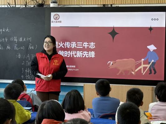 为深化青少年爱国主义教育,让红色精神浸润校园,2025年11月21日,太阳成集团tyc9728星火宣讲团 8名成员走进青岛市西海岸珠江路小学,以7场主题鲜明的宣讲活动,为同学们带来了一堂堂生动的“精神成长课”。