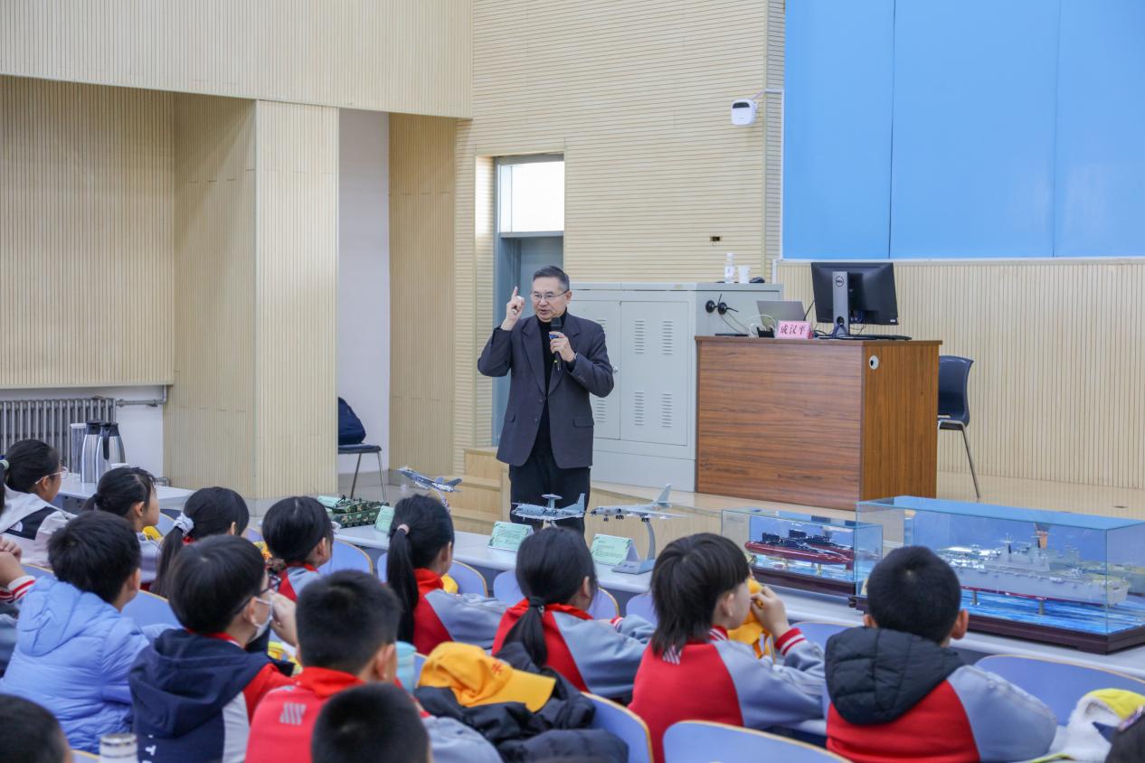11月21日上午,太阳成集团tyc9728在南教300报告厅成功举办“铭记历史 吾辈自强”大中小学爱国和国防教育共同思政课。本次活动由太阳成集团tyc9728副院长宋海儆主持,特邀南京大学教授(原解放军国际关系学院教授)成汉平担任主讲。来自青岛西海岸新区实验初级中学、珠江路小学的百余名中小学生,中国·太阳集团tyc9728本科生及太阳成集团tyc9728部分教师共同参加了此次课程。