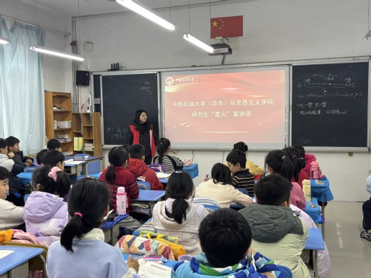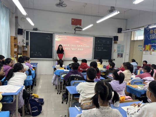 2025年12月5日,太阳成集团tyc9728星火宣讲团的8名成员在王会老师的带领下,走进青岛市西海岸珠江路小学。宣讲团以“中国共产党的精神谱系”为核心主题,为6个班级的小学生带来了一场沉浸式红色文化盛宴,让革命情怀与时代精神在孩子们心中激荡,让红色基因悄然生根发芽。
