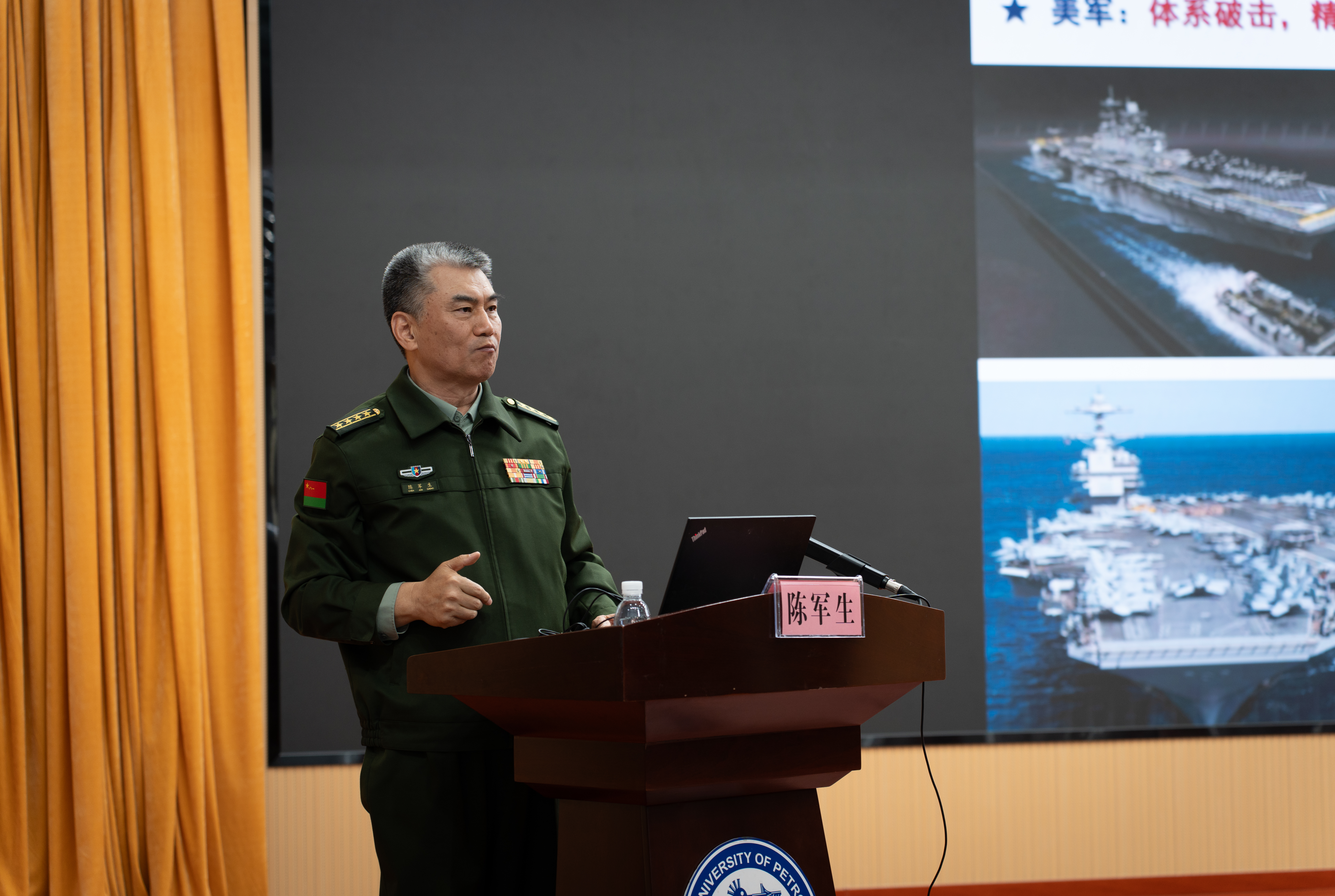 陈军生教授是国防大学军事管理学院技术三级教授、博士生导师,国防大学名师名家,长期从事国防科技与装备管理领域的教学科研工作。他兼任军委科技委、装备发展部、后勤保障部多个专家组成员及国家国防教育讲师团成员,曾获国家科技进步二等奖、国家教学成果二等奖、军队科技进步一等奖等三十余项重要奖励,享受国务院政府特殊津贴。作为一位成果卓著的学者与长期服务于国家安全战略决策一线的资深专家,陈军生教授的到来受到与会师生的热烈欢迎。